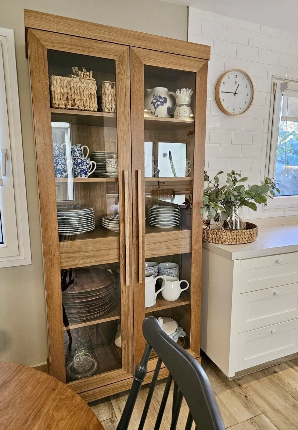 Fabricado en Petiribí de primera calidad, el Vajillero Rienza ofrece un amplio espacio de guardado con 2 cajones equipados con correderas telescópicas reforzadas y 2 puertas con estantes regulables para organizar tus vajillas con facilidad.